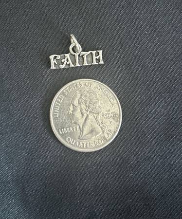 For sale is a very nice sterling silver charm for a bracelet or necklace that says FAITH. The font lettering style is really cool and a great addition to your bracelet or necklace.