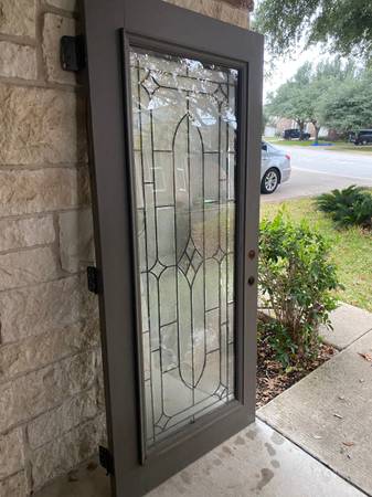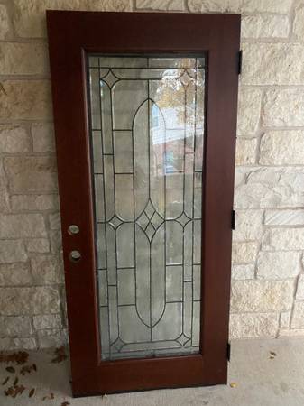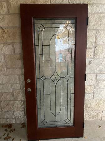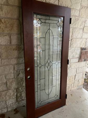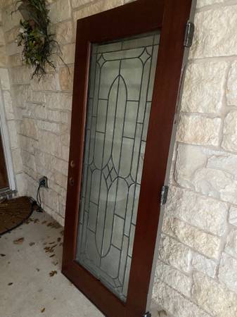 A beautiful Mahogany entry door with full glass center. It fits 36" x 80" frame.
