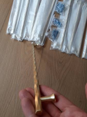 New 10 Pack of 12.6" Hole Center Hammered Brass Cabinet Handles New - open box. JiaSenBao Brushed Gold Tone Hammered Brass Cabinet Handles Drawer Pulls Size: 12.6 in (320 mm) Center Hole to Hole...