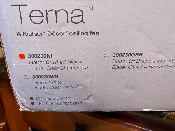 New Kichler Lighting - 300230 - Terna - Ceiling Fan with Light Kit - 19.75 inches tall by 15 inches wide.
