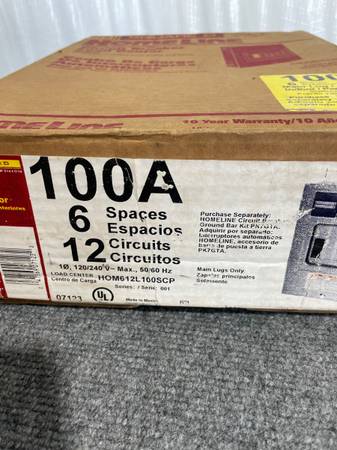 New 100 A Indoor Load Center 6 spaces, 12 circuits New, never used Price firm Call or text but do not ghost that is childish