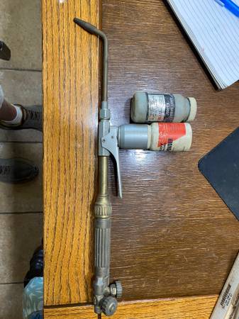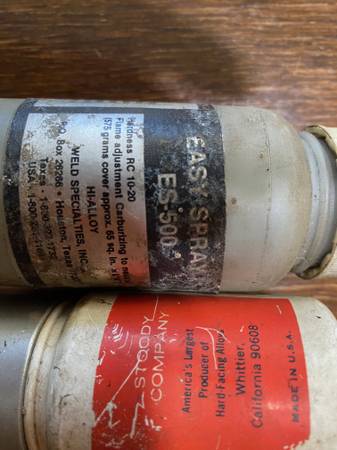 Stoody torch with lot of powder for building up shafts.