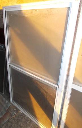 WINDOWS: Various windows of differing sizes and prices. 1 long window with 2 panes 30 3/8" by 60 1/4" (outside measurement 32 1/4" by 60 3/4") - $20 2 narrow windows 28" by 58 1/2" - $20 EACH 1 4...