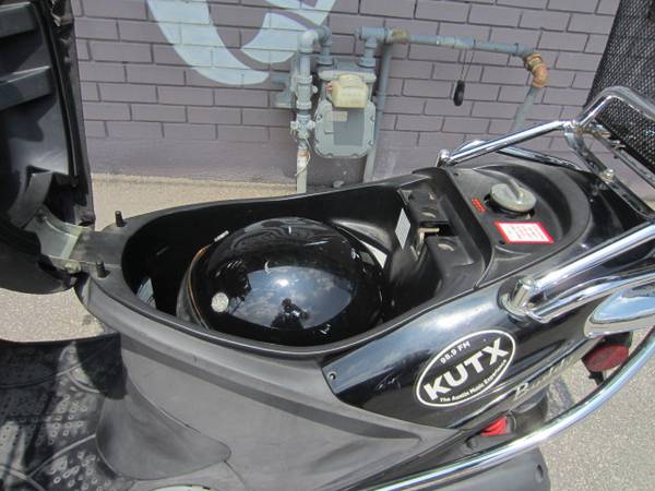 Just in time for free parking at ACL festival! This Genuine Buddy 125 is priced to move! Urban Motosports just got her resurrected and has received fresh fluids and a new battery. This scooter is coming with a helmet, cowl protectors, rear rack and basket for all your shopping needs. The Buddy 125 can cruise speeds of 65+mph and boasts 90 MPG! Don't miss this great price on a fantastic scooter. Hurry in today!