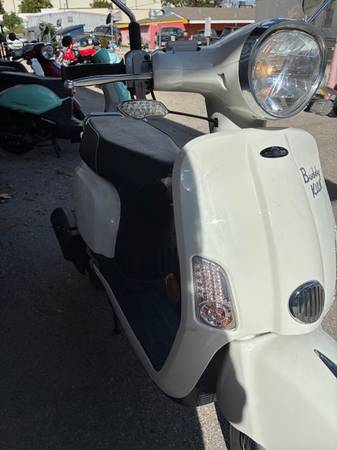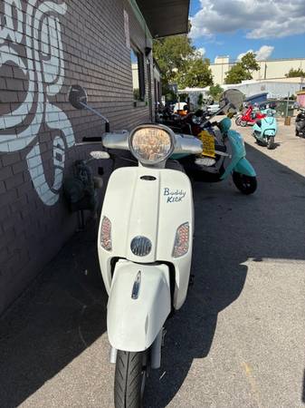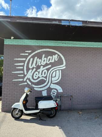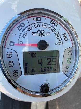 Say Hello to your next ride. The Genuine Kick is an amazing classic styled scooter with many modern upgrades. This scoot is super comfortable for a passenger, can do speeds of 65+mph and boasts 90 mpg making it both economical and ecologically friendly. This scooter has a shelf that holds a coffee/water bottle and has a phone charger built in. This Genuine Kick scooter also has a digital dash, hazard lights, and is fuel injected. But wait, there's more :) The original owner of the scoot is including a xena lock, battery charger, rear rack and cargo net with the sale. WHAT?! Hurry in, this IS the scoot you have been waiting for! This scooter has low miles and just had all its annual maintenance. She is ready to ride off into the sunset....Or ACL fest.