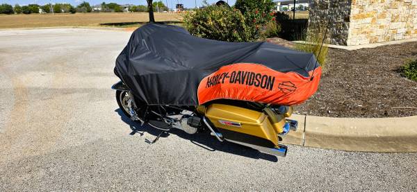 • Harley-Davidson touring motorcycle half-cover. Small enough to keep with the bike at all times.