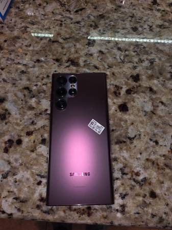Samsung S22 Ultra 256. Deep red in color. Comes with an otter box defender and screen protector. No scratches or dings. In excellent condition Phone is factory rest.