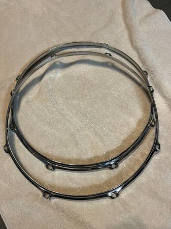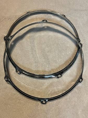 New/Unused 14" and 10" Slingerland Style Stick Saver Hoops. Like new condition. 14", 8 hole hoops $16.00 each or both for $30.00, 12", 6 hole hoop $12.00.