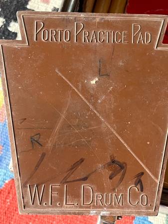 But wait! There’s more. It’s in the original Ludwig suit case. It has the original WFL stand and practice pad. Several old band books in the case too.