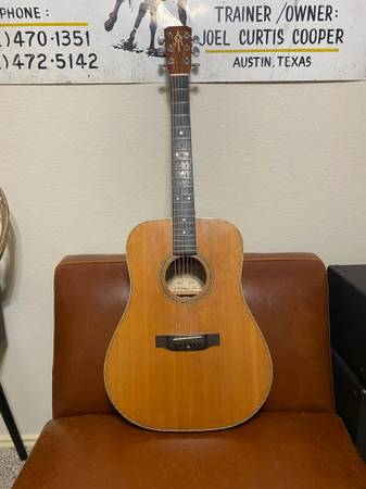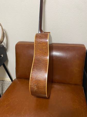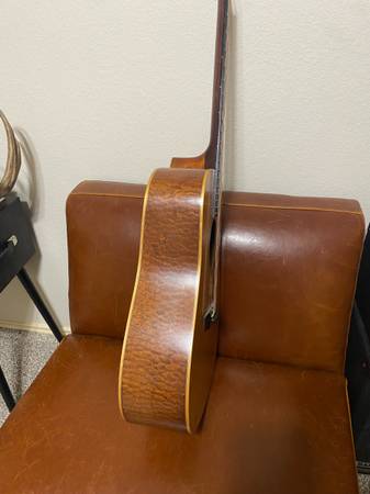 Incredible guitar. Canadian spruce top, beautiful burled mahogony back and sides, herringbone nut , white maple binding , ebony fretboard, snowflake abalone inlays. This guitar is gorgeous all around. Plays and sounds just as nice as it looks. Looking for cash or potential trade for other high end acoustics. Some wear and tear for a vintage instrument. Some light staining on headstock and one side could be polished out easily. Has Braggs under bridge pickup installed as well. Case included