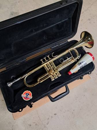 Made in USA. Good condition. Valves oiled and working good. Cheaper than rent. Includes case, mouthpiece, and mute.