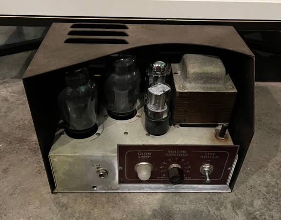 Up for grabs is this modified Bell and Howell Filmosound amp. I had it modified by my go-to tech of the last decade, Dan at Strait music. It has one input, one volume knob and a 16 ohm out. It is a great clean pedal platform. Trades considered for other amps, guitars, basses. Drum equipment, keyboards, synths or recording equipment. Pickup in east Austin, 78724. Please message any questions or concerns. Thanks.