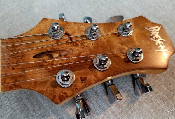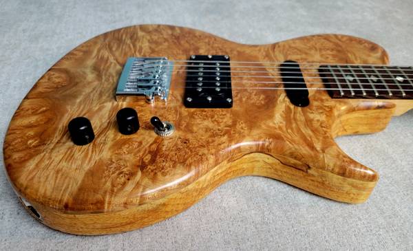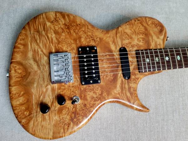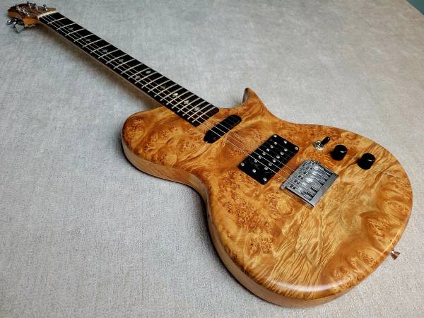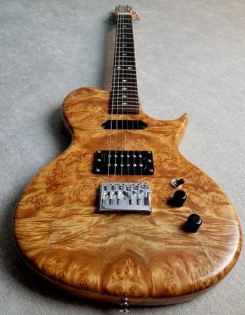 New Bresett Guitars boutique electric guitar. Exotic and beautiful with an amazing tone and feel. Materials: Top-maple burl Body-spalted maple Neck-quartersawn maple Fretboard-wenge Tuners-hipshot...