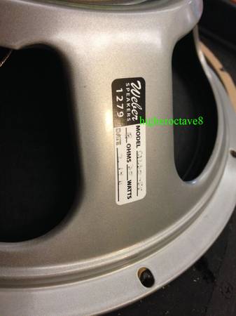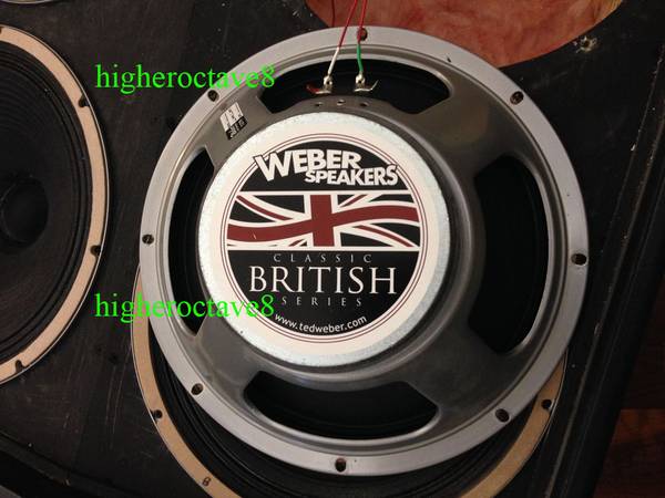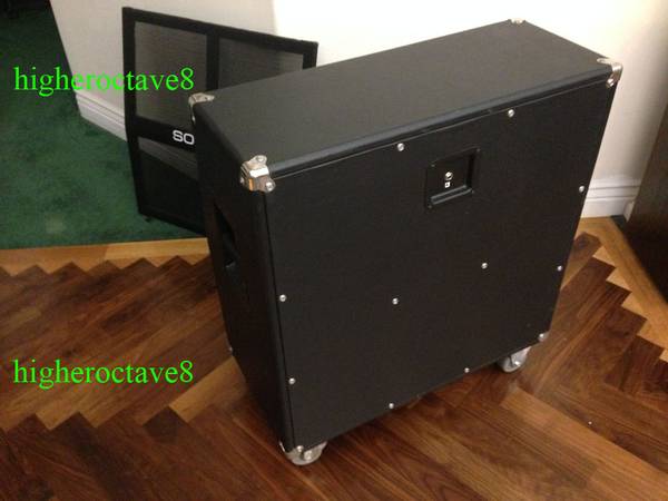 This cab was hand-built by a cabinet maker in Ohio to match my Soldano in physical specs but with special dual 2x12" split sound chambers, each chamber is fully insulated, and the single 4x12" cab works like having two 2x12" cabs stacked together for a tighter sound than a standard 4x12" design. The speakers are matched quad of the original Weber British Classic C1230-55 with the vintage "pre-Rola Doping" treatment and British Kurt-Mueller ribbed 55hz cloth surround cone, THE true vintage Celestion G12H-30 Tone, 1-3/4″ voice coil, ordered in 8-ohm version so that each 2x12" split is wired for 16 ohms, and combined Dual 2x12" at 8 ohms. These speakers feature a 50-ounce massive speaker magnet, matched serial number/dates, and custom ordered from Weber with a fair wait time and approximately $200 each back in the days. The best G12H-30 that Celestion never made. You know it! The original Soldano logo came directly from Mike Soldano to match my Decatone at the time. This cab will make your amp come alive. Available for pick up in Downtown Austin by the University campus.