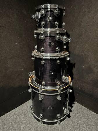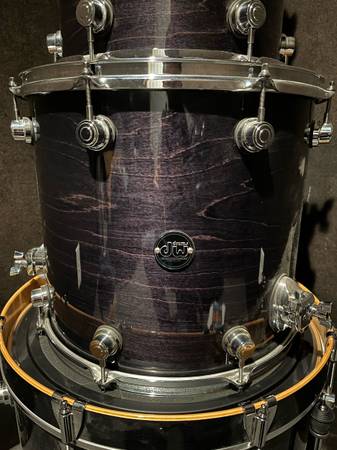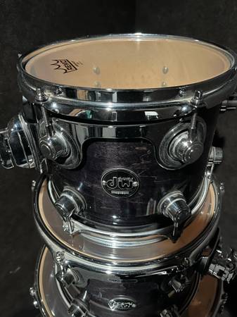 Kick drum, 2 rack toms and a floor tom in ebony black stain. Tom legs and rack mount hardware included. Excellent condition with soft cases included, which are also in excellent condition. Sizes...