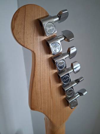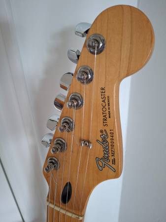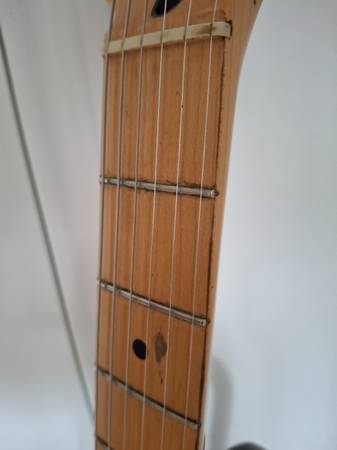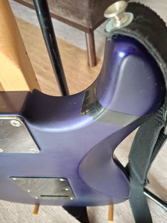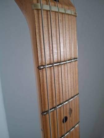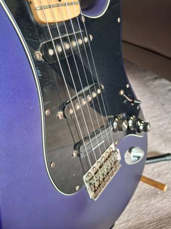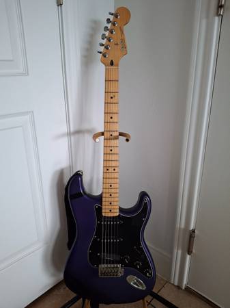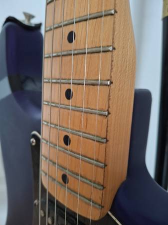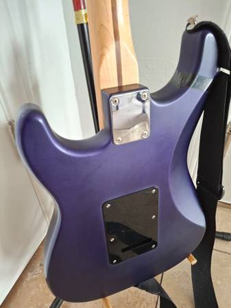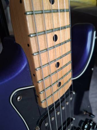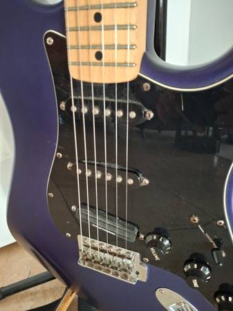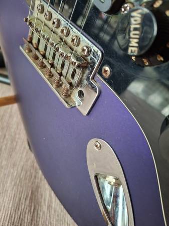 The neck of this Fender Stratocaster MIM 2003 plays extremely well. Action is very low. I believe the finish is called Satin Blue but looks more purple to me.