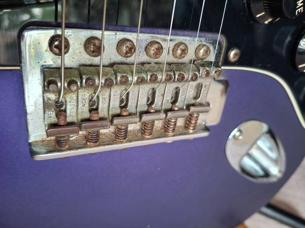 The bridge needs some cleaning. Bridge height screws on the low E string need to be cleaned or replaced for an Allen wrench to adjust.