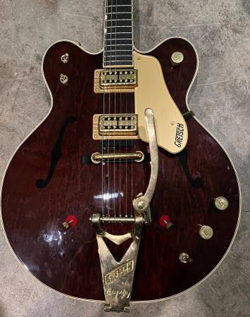 Up for grabs is this Gretsch G6122T-62 vintage select Chet Atkins Country Gentleman electric guitar. This thing is practically mint and plays and sounds great. I noticed some very very minor scratches towards the bottom backside of the guitar but beyond that this thing is in great shape. Comes with original case and key. Asking $2400 cash but trades considered for other guitars, amps, basses, drums, keyboards/synths, recording equipment, etc. Please message any questions or concerns. Thanks.