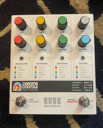Chroma Console is a flexible multi-effect pedal that takes inspiration from the eccentricity, grit, and lively instability of beloved vintage recording technology, combines it with brand new sounds, and delivers it all through an intuitive user interface that puts wide-ranging sonic experimentation at your fingertips.
