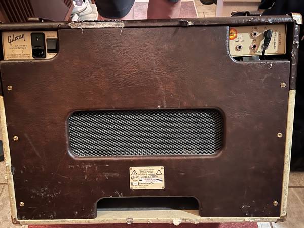 Late 00s Gibson point to point 1x12” GA 40-RVT Diode/Pentode switchable 15w/30w The reverb circuit was a disaster and was taken out. Tremolo is very Vox/Valco like and hard clipping. Sort of a hybrid of a Vox AC and an early Gibson amp with TONS OF HEADROOM. Like a cleaner Goldtone circuit if you know those amps. Seriously a loud, wood-y sounding rock n roll machine. New in the last couple years EV Cannabis Rex which is way better sounding with this circuit than the OG EV it came with. Shows wear and tear along the bottom but nothing structural. Not a lightweight amp. Will keep up with a loud band no problem. Too much stuff.