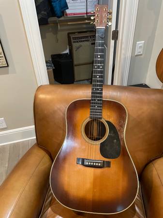 1974 Martin D28 Shadowbox Sunburst, Gold Grovers, Original Light Blue Hard Shell Case. $2900.00 Cash Only