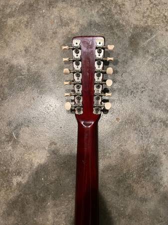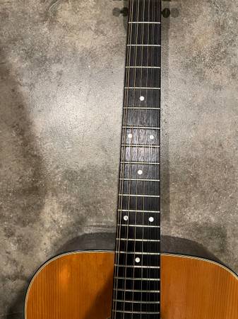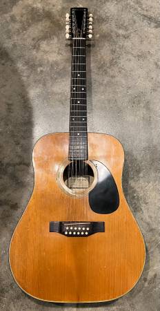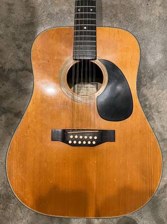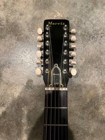 Up for grabs is this Morris guitar. It’s an H12 12 string model made in Japan from the 70s. The brand is Morris but I also saw “Penco” on the tag and “Yoshino” on the truss rod cover. It’s a well made vintage guitar and sounds great. I just oiled the fingerboard and put fresh strings on it. The truss rod doesn’t seem to adjust but the action is good albeit slightly high.