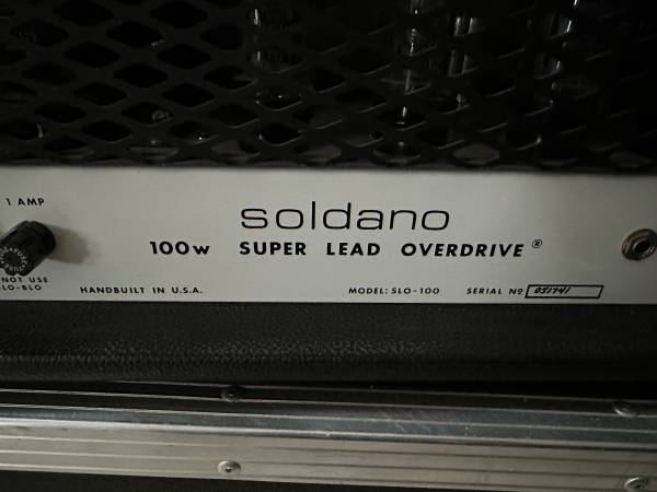 A SUPER SOLDANO SLO100 AMP ALL MADE IN THE USA. ONE OF THE LAST ONES BUILT BY Michael SOLDANO HAS HEAVY DUTY CARRYING CASE I TAKE CASH ONLY $4000.00. No shipping. Local pick up only