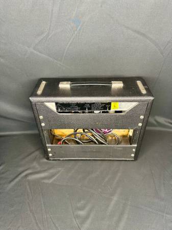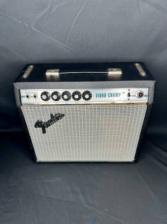 The Vintage 1979 Fender Vibro Champ Tube Amplifier is a classic piece of musical gear manufactured in the United States by the renowned brand Fender. This amplifier, from 1979, embodies the retro charm and functionality of vintage musical instruments, making it a prized possession for collectors and musicians alike. With its iconic branding and year of manufacture, this Fender Vibro Champ Tube Amplifier is sure to be a standout addition to any guitar enthusiast's collection. The baffle and speaker have been upgraded from an 8" speaker to a 10" Jensen speaker.