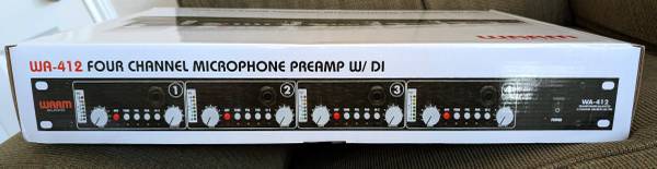 The Warm Audio WA-412 delivers the vintage magic of a venerable American console preamp. With its fat, punchy bass and sweet, open high end, the 4-channel WA-412 preamp/DI packs the classic sound of rock 'n' roll into a sleek 1RU chassis. Warm Audio gear has famously upset the pro audio price/performance ratio, and the WA-412 carries on the tradition with its discrete, transformer-coupled through-hole component topology. Stellar performance, top-shelf parts, and amazing value: that's the Warm formula - and the WA-412 nails it.