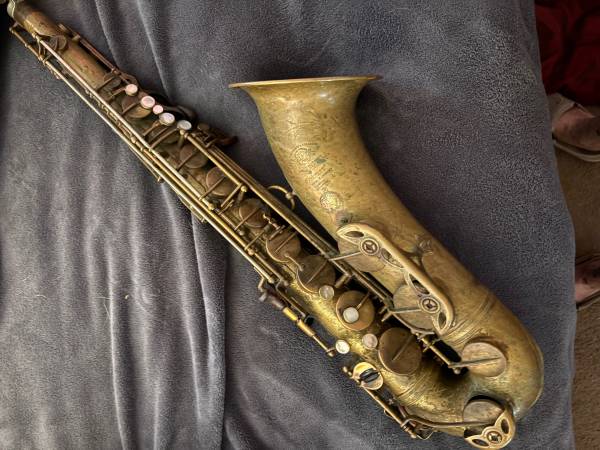 Selmer mk VI tenor saxophone sn 67xxx Purchased in 1981 on consignment from Yusef Lateef who had gotten it from Pharaoh Sanders. Plays great. Original neck is patched. Also have brass Boston Sax...