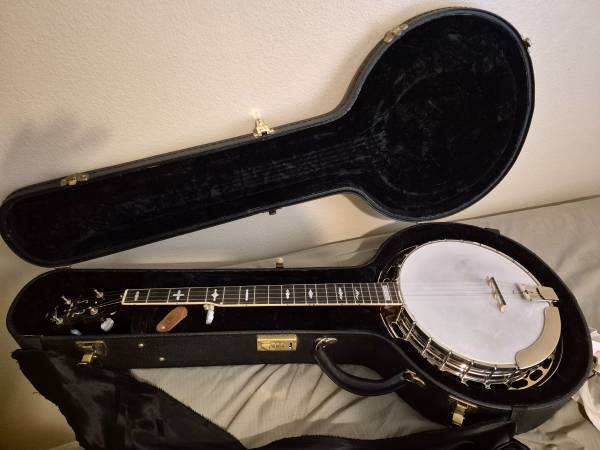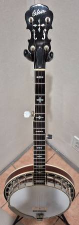 Very nice 2003 Gibson RB250 5 string Banjo. Plays and sounds wonderful, like you expect from a Gibson. Very nice condition with only minor signs of age and use. Beautiful mahogany neck and resonator, excellent finished and chrome, fantastic Scorpion bridge and comes in an original "The Gibson" case. This is from one of the great eras of Gibson banjos, asking $2500. I will consider even, up or down trades for the right Martin guitar. I will not reply to emails nor texts so if you are interested, click on "Reply" above, select "Show Phone Number" and give me a call at the number shown. Thanks!
