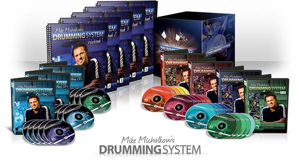 Mike Michalkow's Drumming System on 20 DVDs and 21 CDs, plus 5 workbooks.