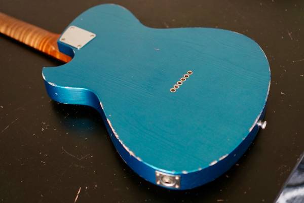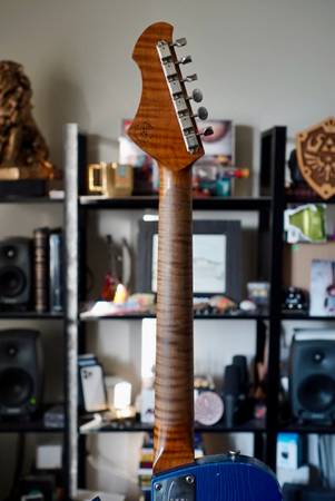 The Indian Rosewood fretboard is comfortable and the frets show virtually no wear. Beefy C Flamed neck feels fantastic on that 9.5” Radius!