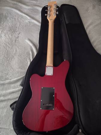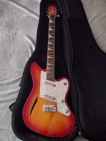 This beautiful Surfcaster has not left my bedroom. Practically unused, mint condition, not a mark on it. Made in Korea. It still has the factory strings on it, and the plastic on the back cover. The lipstick pickups sound great! Included is the whammy bar and a well padded Eastwood gig bag.