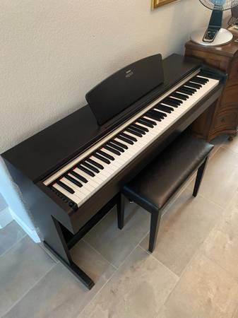Very lightly used Yamaha Arius YDP-141 digital piano; Weighted keys, all three pedals including a half-damper sustain pedal; Two large AUX ports and both "IN" and "OUT" MIDI ports; Model released in 2010; Original retail price was $1,199; Piano is in great working condition