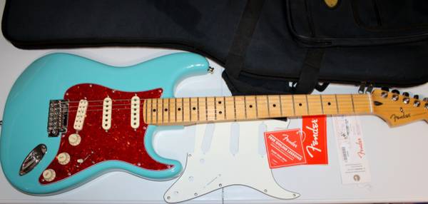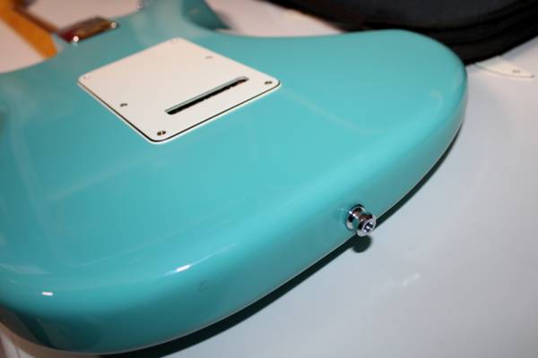 Original pickups, and tuners ARE NOT INCLUDED. The strat was gently used, therefore frets are in like new condition, neck is straight, sound is clean no buzzing. Gig bag is padded and some of the inside lining sometimes gets stuck on the zipper while opening and closing it. The only thing that may go unnoticed on images are superficial surface swirls or other light markings present on the guitar from normal handling/playing.
