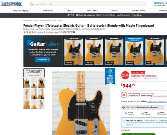 This is a 2025 Fender Player II Telecaster Electric Guitar - Butterscotch Blonde with Maple Fingerboard in perfect working condition and near mint condition. Theres over $500 in upgrades installed. Original hardware and pickups are not included. But you will receive everything pictured. See list below of items installed.