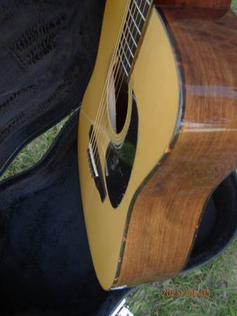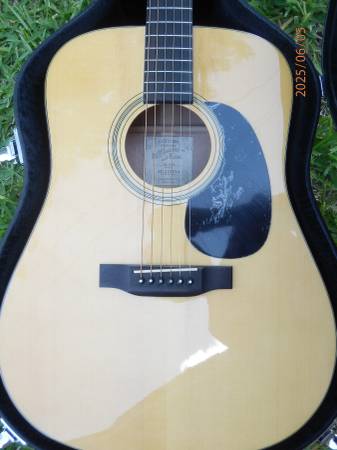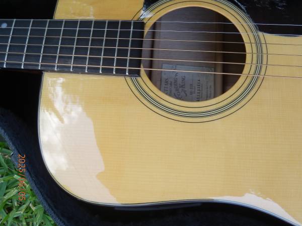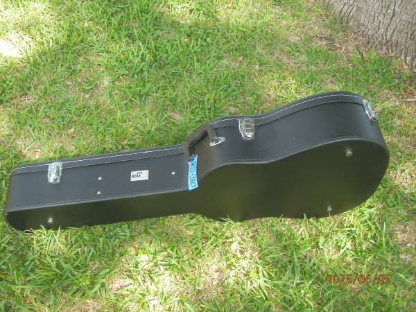 Recording King RD-310 NAMM all solid Adirondack Mahogany Dreadnought with onboard Preamp-EQ-Tuner. In mint, near like new condition, no fretwear. Purchased directly from Recording King, it was a special guitar for the 2011 NAMM show. It's a great guitar, folks at Recording King must have selected one of their very best of this model then installed the German company Shadow Electronics onboard pickup system. A couple of times I have owned a dreadnought that sounded nearly identical to another dreadnought. This RD310 with its medium EJ17 strings that it come to me with and a guitar buddies Martin D-18GE were one of these times (he reluctantly agreed). So I have held onto this guitar for over 10 yrs but now with too many new additions as well as it having spent most of its life in the case its time to pass it on to someone who will get some use, play and enjoyment of it. This would be a great guitar for a performer. Action is very low the whole length of fretboard and I have light gauge strings installed Although mediums are fine as it was set-up from Recording King. The pick guard has the plastic as it arrived to me.