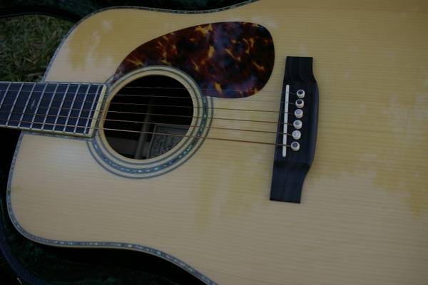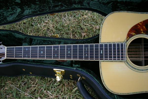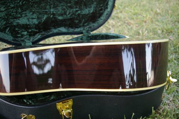 Recording King RD-342 dreadnought with AAA grade Adirondack Spruce top and premium solid E. Indian Rosewood back and sides. This is Recording Kings top of the line dreadnought. I've got a previous top of the line model, aged close to 15 yrs now so decided to hold on to that and let this one go as that previous model on the used market are super rare and would be very hard to replace. The 342 came with light gauge D'Addario EJ16's but some install mediums. Plastic pins were upgraded to bone. Deluxe hardcase included. This is a great guitar in mint or near mint condition, no fretwear and one that you could play for a lifetime. They sound good when new but with 10-15 years aging they'll be cannons and priceless to the owners who play them. Unless I should get around to changing the strings, will include your choice of a new set of EJ16 lights or EJ17's mediums so you can play it a while as is and see what kind of difference there is with new strings.