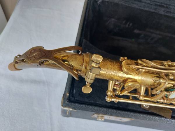1967 Selmer Mark VI alto. Just overhauled with Music Medic Extreme pads. Horn has been played professionally and well kept over the years by a local player, and previous tech work has been very good. Medium bow. Original case is worn, but latches work. Come see it and play it in Round Rock.