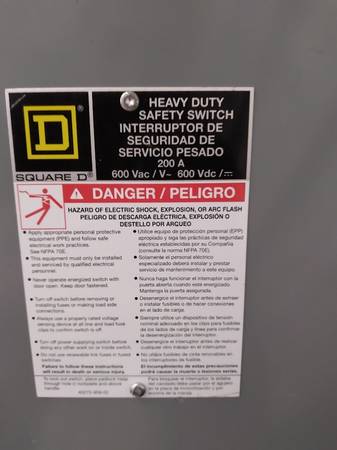 SQUARE D 200 AMP 600VOLT DISCONNECT WITH FUSES