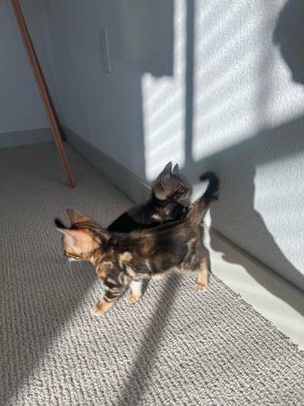 the kittens are litter trained and eating solid food!! they are curious and active and super vocal, so they do best in homes where they'll receive plenty of playtime and attention. small rehoming fee applies. please message for details. serious inquiries only - these kittens are ready to bring joy to their new families!