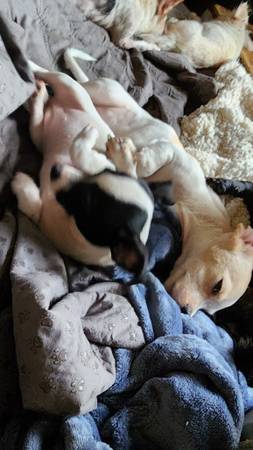 Happy, playful female pups, less than 10 pounds. Born 8/02/2025, are ready for their forever home. I have too many, so need to rehome some. Male is black&white, and is smaller. Small rehoming...