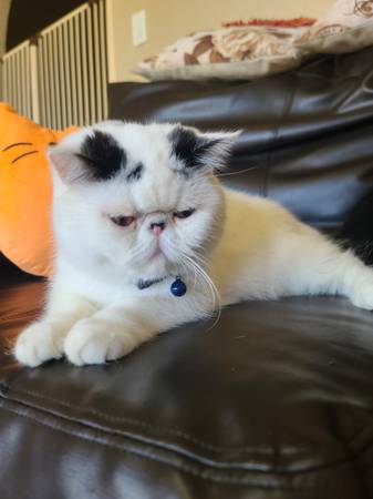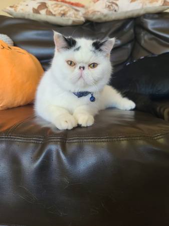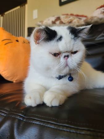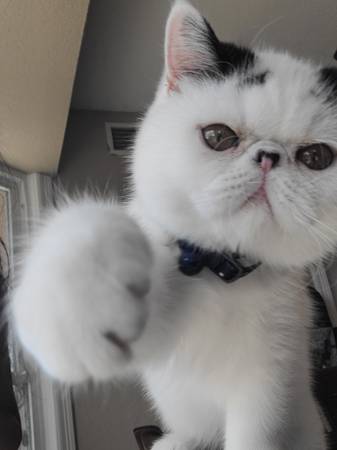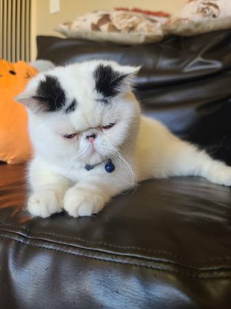 He is exotic shorthair persian bicolor black and white. 6 months old, unneutered. CFA registration.