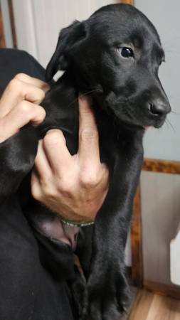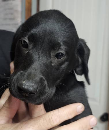 We have black lab puppies! They are all little girls! Small rehoming fee :) They are about 8 weeks old, eating solid food, and have had their first round of shots. Text me @