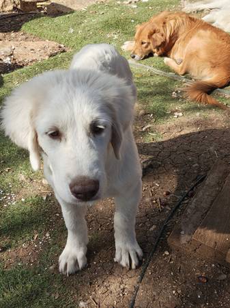 Healthy and strong girl ready for her forever home, or you can reserve her and she can learn and grow for a couple more months until she's ready to guard on her own. She's raised around goats, chickens, ducks, cats and donkeys.