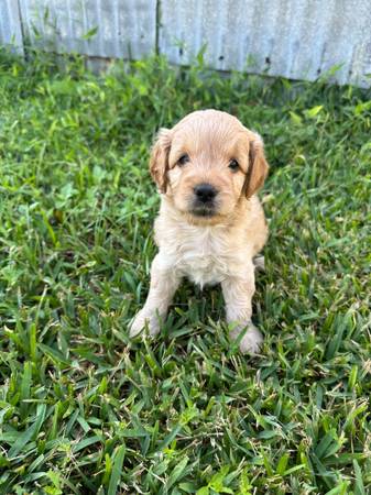 Mini Goldendoodle Puppy. 10 weeks old. Has been vet checked and is up to date on all vaccinations. Please call or text with any questions. Rehoming fee applies. Seven37-three4zero-8one3one
