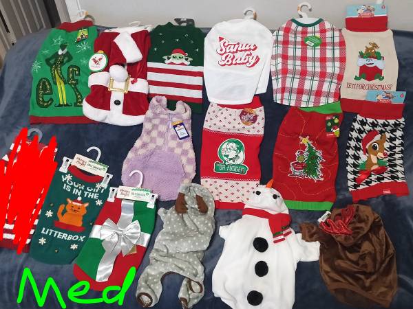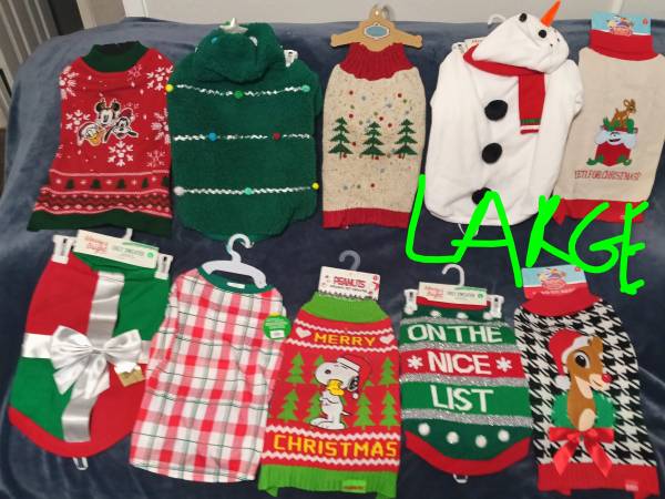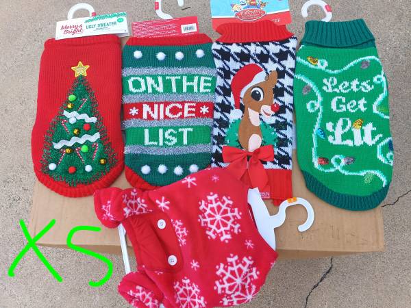 New with tags Christmas sweaters for puppies or dogs. I have multiple styles and sizes. Sizes are xs, s, m, L, XL $6 each or 4 for $20 Styles: Elf, Christmas Story, Snoopy, the Grinch, Rudolph the...