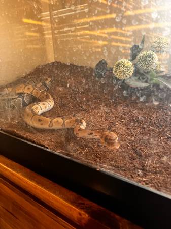 Enclosures and tanks included. 1 Albino Hognoes, 1 Kenya Sand Boa, and 2 cohabing pythons! Call or text for pickup