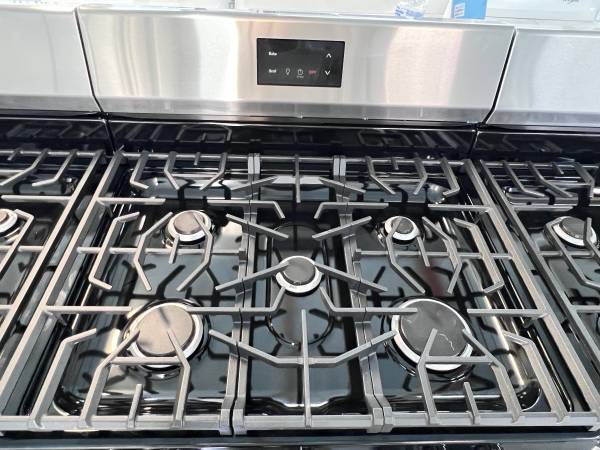 Working in Perfectly Manner *30 inch * 5 burner * Even Baking Technology *edge to edge grates *Large 5.1 oven capacity *cast iron grates * dishwasher safe removable burner caps With full paperwork...